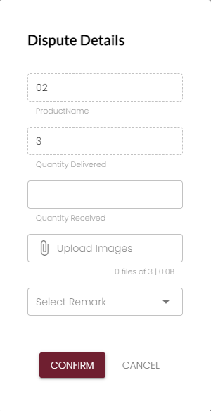 To dispute delivery order, click on the pen icon beside the record. Then, the dispute form will displayed to enter the details of the dispute.