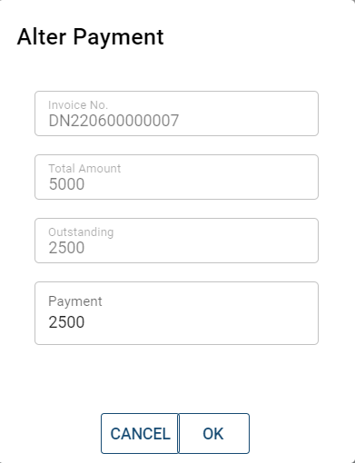 Click on the 'pen' icon on the right of the invoice box to access Alter Payment form. When the box pops up, enter the preferred amount to pay at the 'Payment' box.
