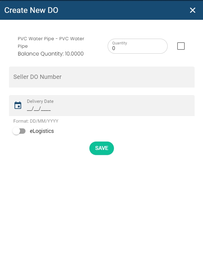 Create new DO will pop up. Fill in the form with the details accordingly. Click the 'Save button to create the delivery order.